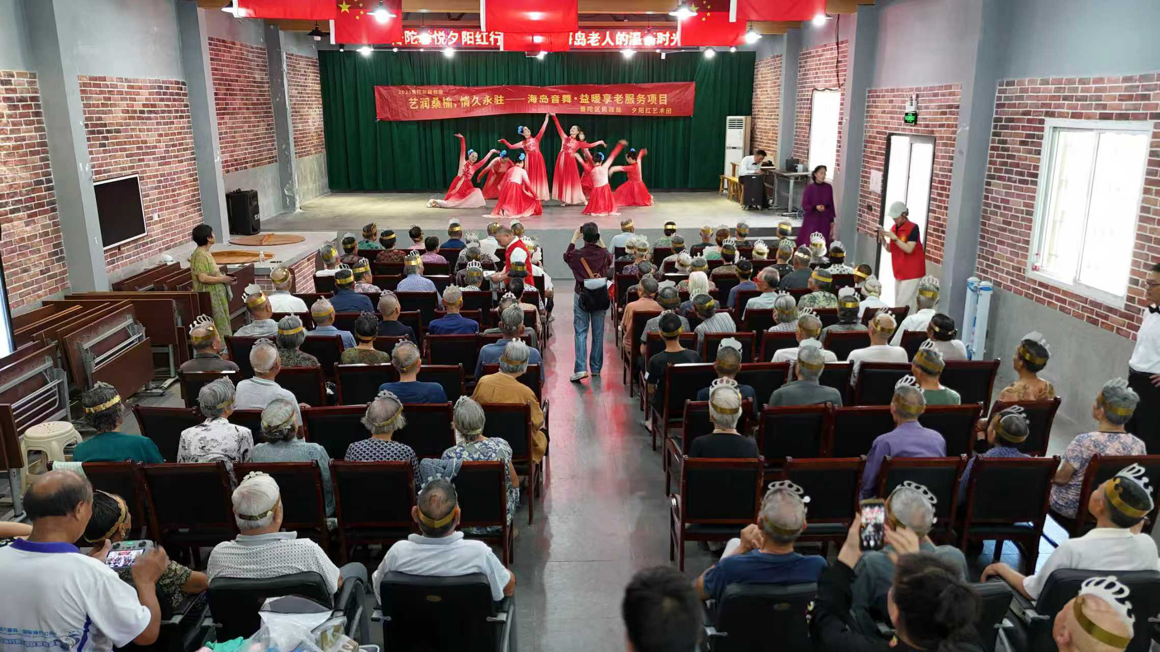 近日,螞蟻島管委會(huì)螞蟻島文化禮堂一大早就熱鬧起來,現(xiàn)場(chǎng)正在為80周歲以上的老年人舉辦集體生日會(huì)。本次活動(dòng)還邀請(qǐng)了普陀夕陽紅藝術(shù)團(tuán),為近百位80歲以上的老人送上精彩的文藝節(jié)目。