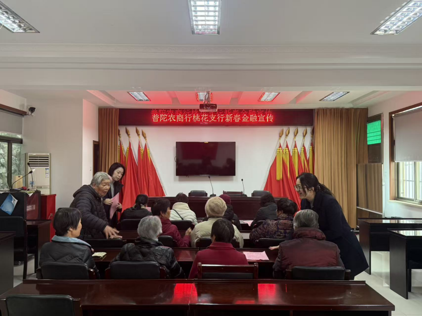 2026年新春甫至,近日,普陀農商銀行桃花支行將一份特殊的“年禮”送到了桃花鎮村民身邊。銀行工作人員走進公前村文化禮堂,開展金融知識宣傳活動,以暖心服務為海島新春增添別樣的金融守護服務。